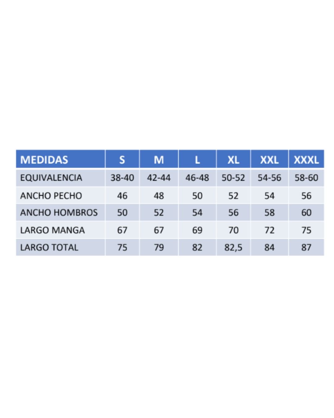 | TALLE | S, M, L, XL, XXL, XXXL |