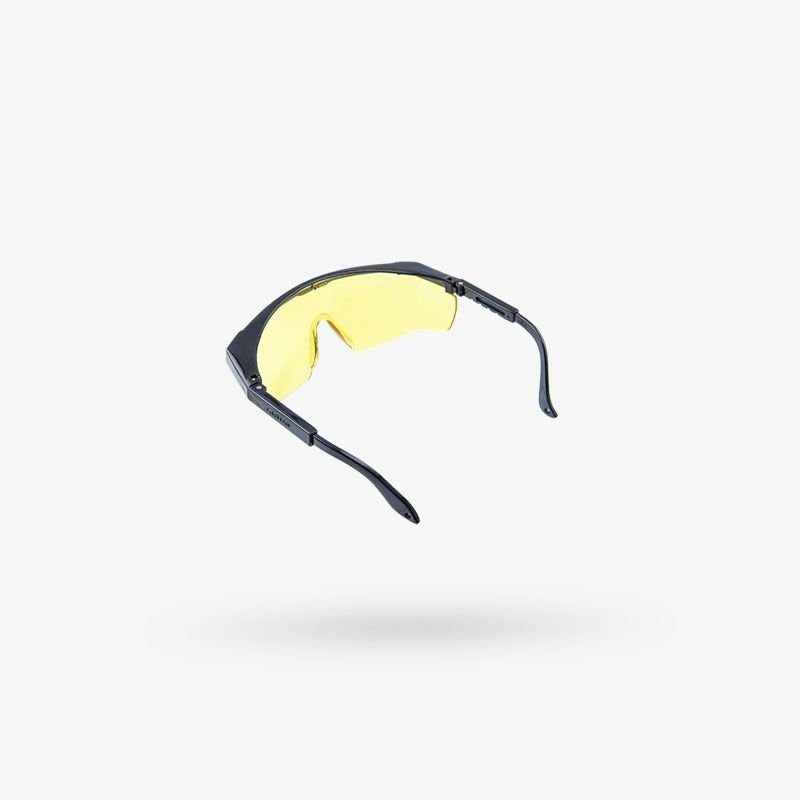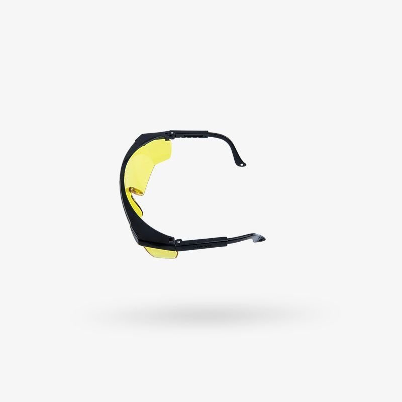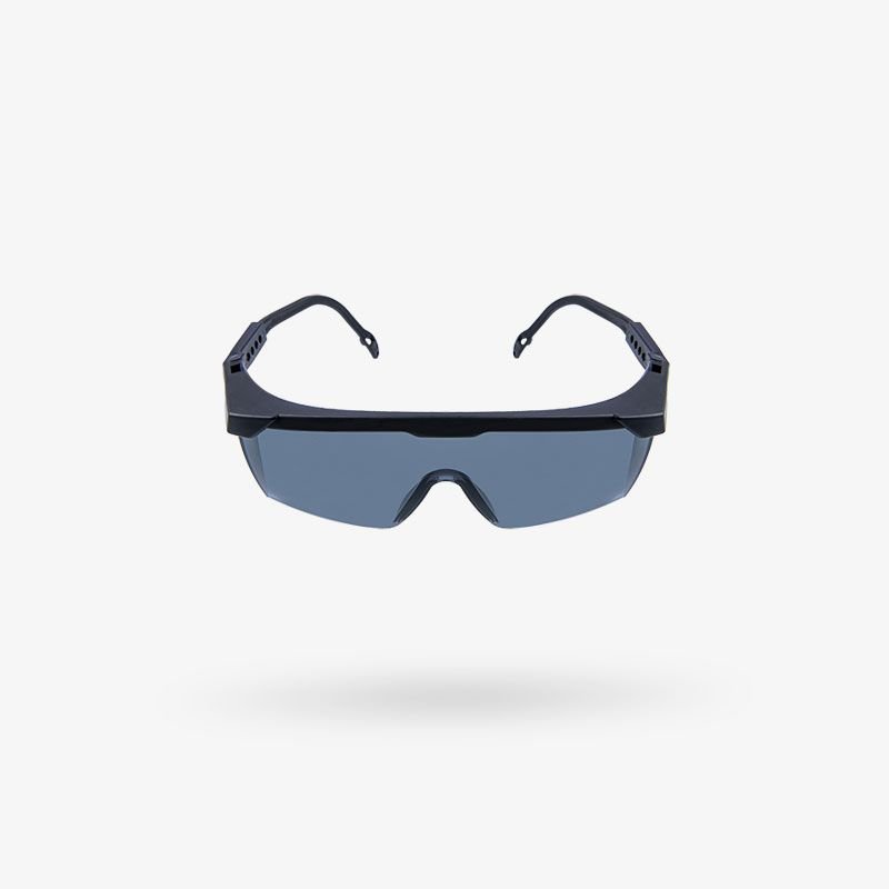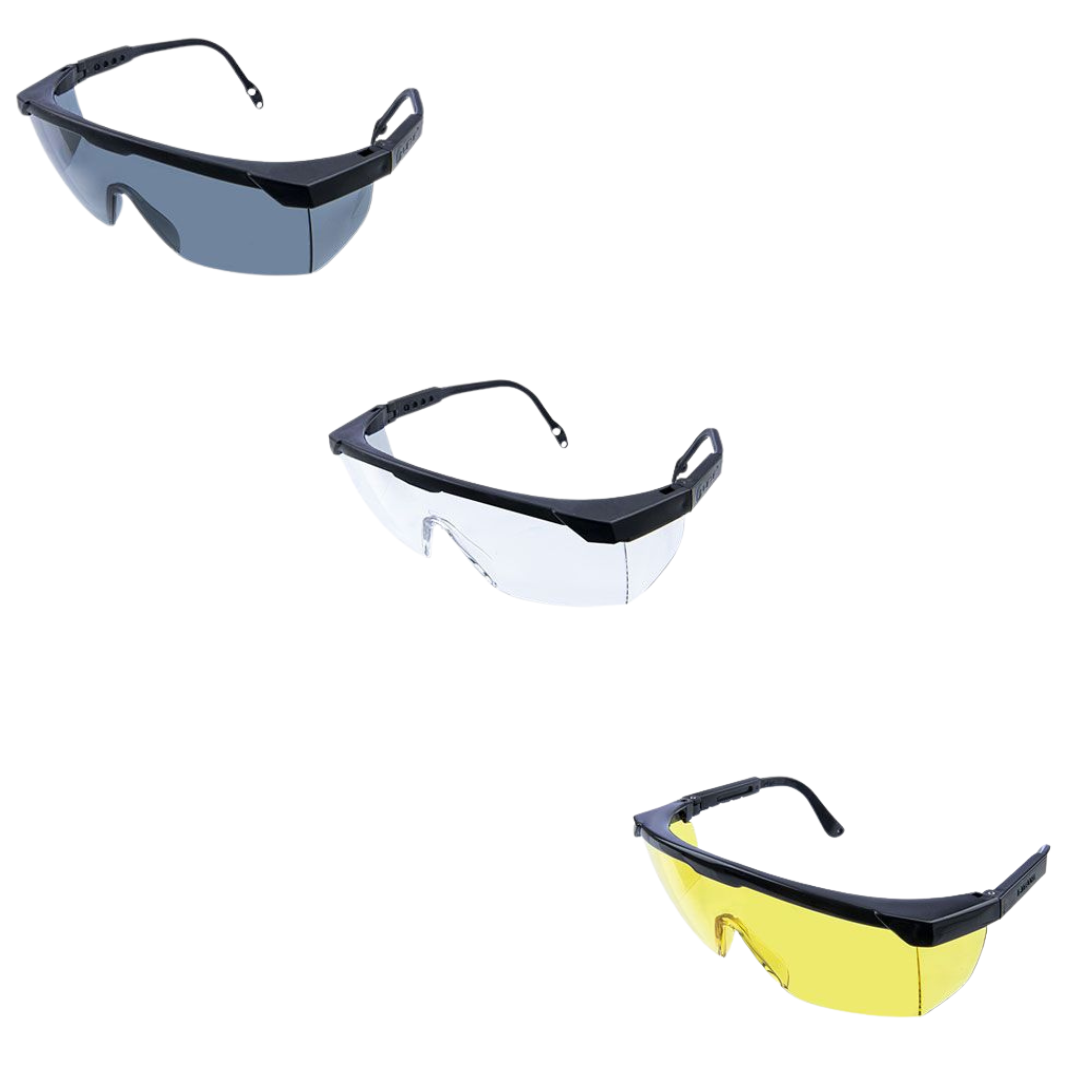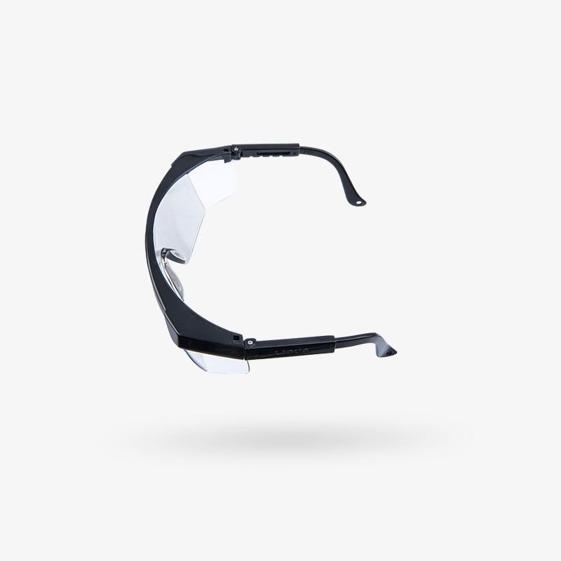 Lente de policarbonato. Filtro UV Protección frontal y lateral. Marco y patillas flexibles de nylon. Patilla telescópica ajustable a 4 posiciones de largo. Tornillo de acero inoxidable. Diseño clásico que permite la visión periférica.